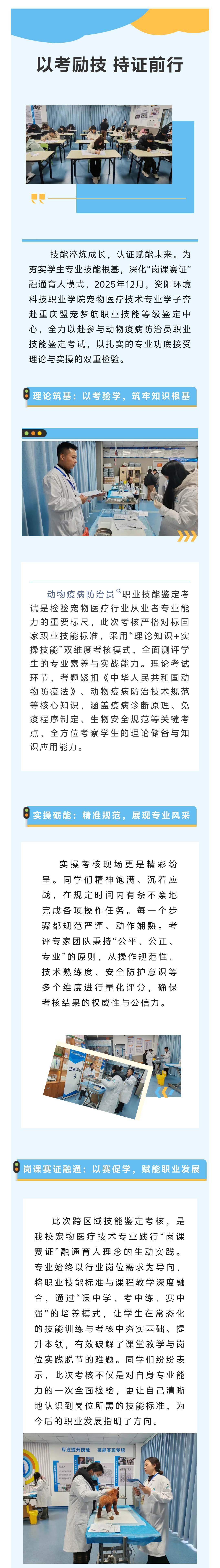 以考砺技,持证前行!资阳环境科技职业学院宠物医疗技术专业学子奔赴重庆盟宠梦航职业技能等级鉴定中心,全力以赴参与动物疫病防治员考试