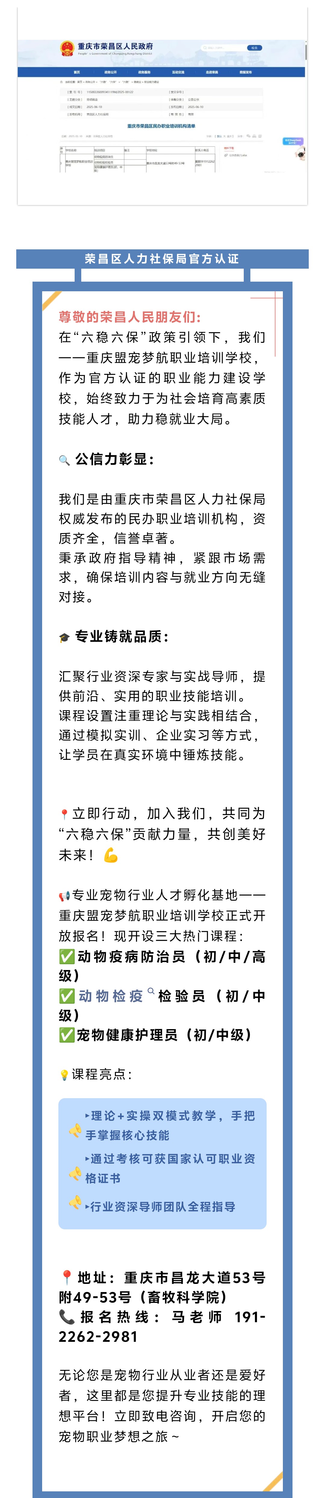 官方认证,专业领航——重庆盟宠梦航职业培训学校助力稳就业,技能成就未来!